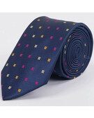 Купить Темно-синий галстук напрокат с разноцветным узором для мужского костюма в интернет-магазине arenda-kostumov-nsk.ru с доставкой. Темно-синий галстук напрокат с разноцветным узором для мужского костюма, артикул RoSS-101 true: читать описание, характеристики, фото