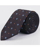 Купить Коричневый галстук в аренду с голубым цветочный и оранжевым квадратным узором для мужского костюма в интернет-магазине arenda-kostumov-nsk.ru с доставкой. Коричневый галстук в аренду с голубым цветочный и оранжевым квадратным узором для мужского костюма, артикул RoSS-101 true: читать описание, характеристики, фото