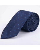 Аренда синего галстука в фактурную полоску с квадратным бело-голубым узором для мужского костюма