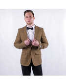 Аренда мужского пиджака табачного цвета в широкую клетку Если Вы хотите выделиться на светском рауте, деловой встрече или особом событии, подчеркнуть свой неординарный стиль и вкус, но не желаете тратить значительные суммы на покупку дорогостоящего наряда, то аренда мужских костюмов – идеальное решение для Вас. Мы предлагаем Вам аренду эксклюзивного мужского пиджака табачного цвета в широкую клетку, которая станет воплощением мужественности и изысканности. Этот мужской костюм в аренду сочетает в себе классику и актуальные тренды моды. Табачный оттенок подчеркнёт глубину цвета глаз и придаст образу тепло и благородный полутон. Широкая клетка на пиджаке – традиционный узор, который никогда не теряет своей актуальности и добавляет облику изысканность и аристократичность. Качественные ткани, выбранные для пошива данного костюма в аренду, обеспечивают прекрасную посадку по фигуре и комфорт при носке в течение всего дня или вечера. Пиджак имеет классический крой, который хорошо смотрится на мужчинах любого телосложения, а удобные внутренние карманы позволяют носить с собой необходимые мелочи. Преимущества аренды мужских костюмов Преимущества аренды мужского костюма такой расцветки – это не только экономия средств, но и возможность каждый раз появляться в новом образе, не покупая при этом костюм. Аренда также помогает избежать проблем с выбором и покупкой наряда, который будет носиться редко. Аренда мужского пиджака в широкую клетку в нашем салоне предлагается с гибкими условиями. Вы можете взять пиджак на один день для участия в мероприятии или на более длительный срок, если планируются несколько выходов. Наш специалист поможет подобрать размер, отрегулирует длину рукавов и общую посадку изделия, чтобы пиджак сидел идеально. Выбирая аренду мужских костюмов, Вы также делаете выбор в пользу устойчивого потребления, так как это позволяет сократить количество производимой одежды и снизить нагрузку на окружающую среду. Нет необходимости покупать одежду, которая будет носиться редко – достаточно арендовать костюм высокого качества, который подарит Вам чувство уверенности и стиля. Резервирование пиджака возможно как онлайн, так и через посещение нашего салона. Мы также предлагаем дополнительные аксессуары, которые помогут завершить образ: рубашки, галстуки, платки для кармана и запонки. У нас вы найдёте все необходимое для того, чтобы выглядеть безупречно на любом торжестве. Не упустите свой шанс произвести неизгладимое впечатление, арендуйте мужской пиджак у нас и будьте уверены, что ваш образ будет на высоте. Мы гарантируем индивидуальный подход к каждому клиенту и идеальный вариант мужского костюма для любого события.